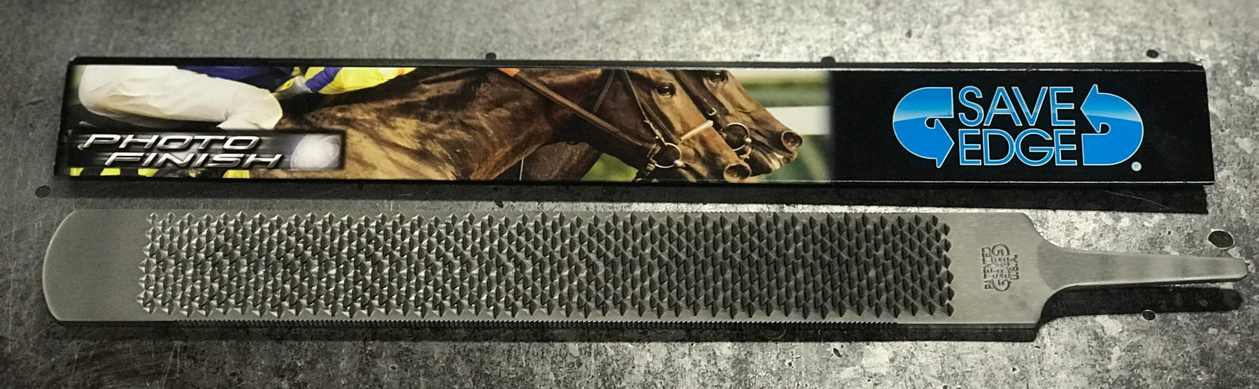 The Photo Finish Rasp combines two innovations: The Save Edge rasp teeth on one side and the super smooth cutting teeth on the other. The Photo Finish is the rasp of choice for live shoeing competitors worldwide!