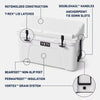 A solid all-purpose size. Holds overnight camp provisions for four people or drinks for a day on the water.